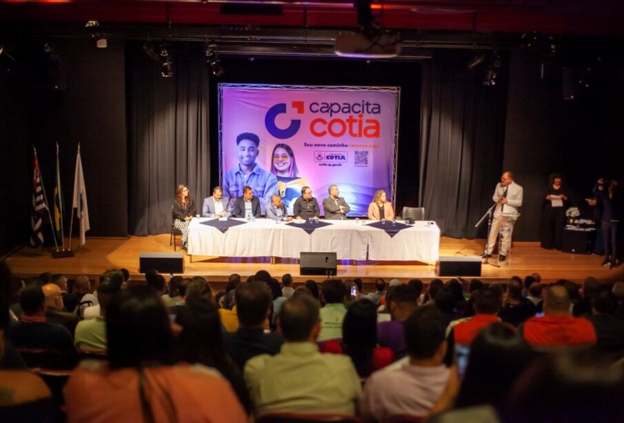 A Prefeitura de Cotia lançou oficialmente, na manhã desta quinta-feira (23/10), o Programa Municipal Capacita Cotia. O evento de lançamento ocorreu no Teatro Wurth e reuniu importantes representantes de empresas e de instituições de ensino, marcando o início de uma iniciativa que visa estreitar as relações entre o setor produtivo da cidade e a mão de obra local. O programa busca o apoio e a parceria de empresários para oferecer formação profissional gratuita aos moradores de Cotia.
