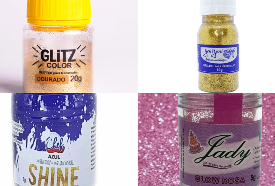 • Pó/Brilho (Glitter) para decoração com polímeros plásticos (todas as cores)