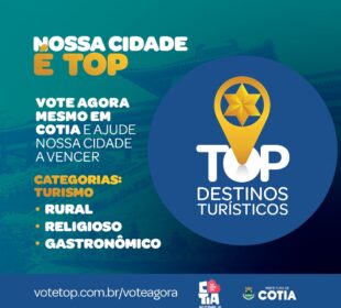 Segue até sexta-feira (26/05) o prazo de votação popular no Prêmio Top Destinos Turísticos. Cotia está no páreo da premiação em três ...25 de maio de 2023CULTURA REALIZARÁ O 2º ENCONTRO DA 3ª CONFERÊNCIA MUNICIPAL NO DIA 3 DE JUNHO