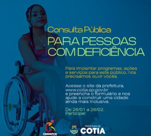 Até o dia 26 de fevereiro acontece a primeira consulta pública sobre pessoas com deficiência e com mobilidade reduzida em Cotia. O estudo ...8 de fevereiro de 2023O QUE É CHATGPT?
