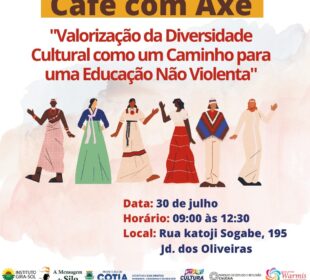 Evento “Café com Axé” ocorrerá no sábado, 30 e é preparatório para a Caminhada da Cultura de Paz e Não-Violência que acontecerá ...27 de julho de 2022PREFEITURA DE COTIA CONVOCA DOCENTES PARA INICIAR TRABALHO