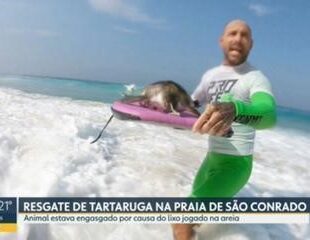SUFOCADA POR LIXO, TARTARUGA É RESGATADA POR SURFISTA
