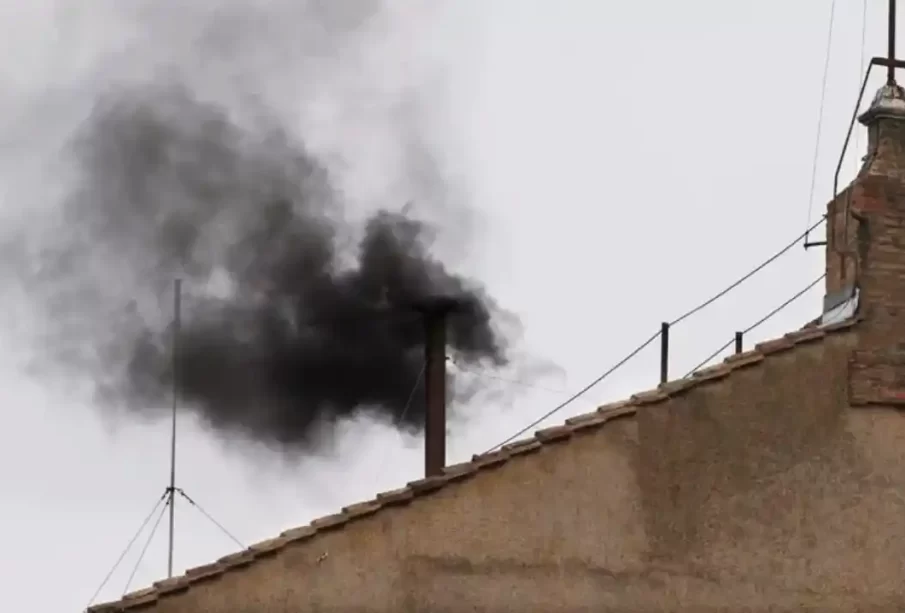 Na primeira votação de hoje, quinta feira, 8 de maio, divulgada às 06:h50m de Brasilia, o que se viu ainda foi fumaça preta saindo pela chaminé da Santa Sé.