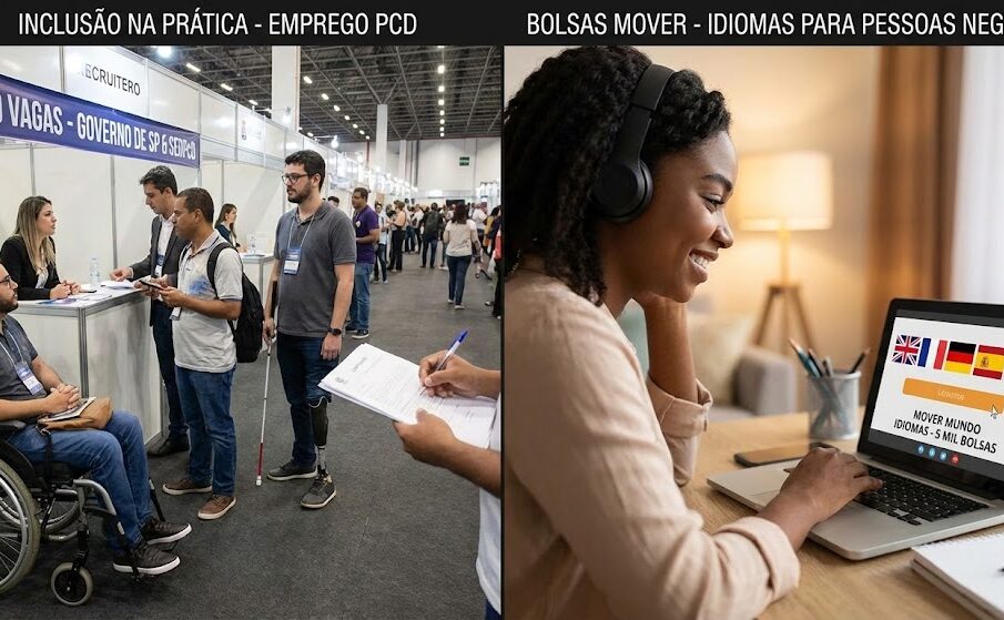 A semana traz grandes oportunidades voltadas à inclusão no mercado de trabalho e à qualificação profissional em São Paulo. Enquanto a Secretaria de Estado dos Direitos da Pessoa com Deficiência (SEDPcD) prepara um evento presencial com centenas de vagas de emprego e regularização de documentos médicos, o Movimento pela Equidade Racial (MOVER) abre a última chamada do ano para milhares de bolsas de estudo em idiomas.